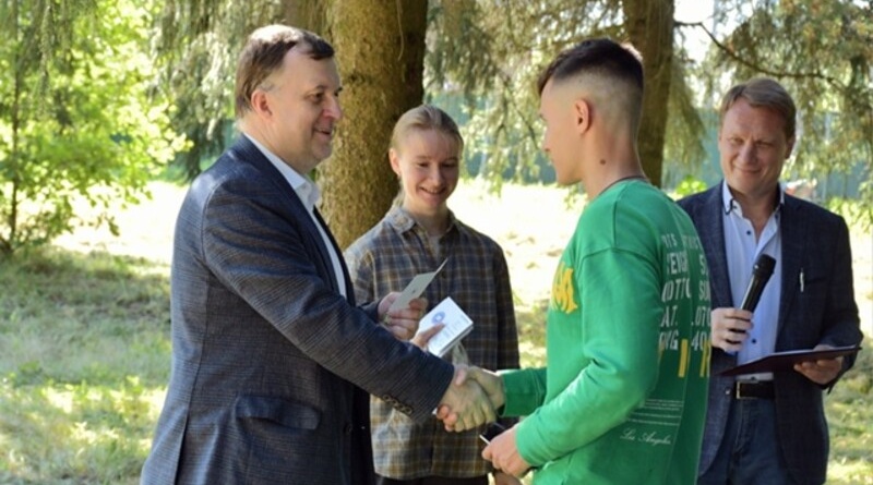 Студенты первого курса филологического факультета ЛГУ им. А. С. Пушкина, обучающиеся по направлению «Журналистика», приняли участие в торжественной церемонии посвящения в журналисты в сквере 30-летия Победы в Любани.