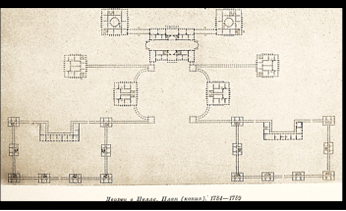 Существует еще один документ, это «План центрального корпуса» дворца в Пелле. Он хранится в фондах Российского Государственного Исторического архива в Петербурге.