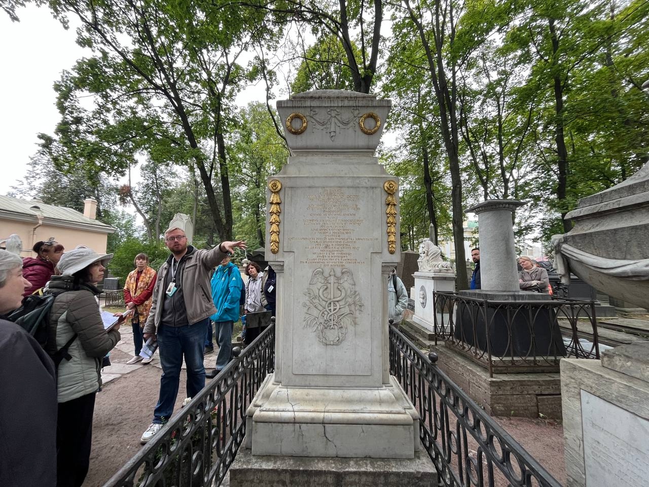 Мероприятие, приуроченное к девятилетию проекта «Открытый город», началось с посещения Некрополя XVIII века и Некрополя мастеров искусств, расположенных в ансамбле Александро-Невской лавры. Это старейшие аристократические кладбища Санкт-Петербурга, где обрели покой выдающиеся деятели отечественной истории и культуры XVIII–XX веков: учёные, литераторы, полководцы, путешественники. Их могилы украшают художественные памятники, созданные мастерами прошлого, многие из которых выполнены из путиловского известняка. Старинное Лазаревское кладбище, ныне Некрополь XVIII века Александро-Невской Лавры, было самым привилегированным в столице Империи; одно только то, что для совершения там захоронения требовалось личное разрешение императора, говорит об особенности Некрополя. К началу XIX века Лазаревское кладбище было переполнено, но желающих обрести покой в стенах монастыря не убавлялось. Поэтому выделили новый участок — так образовалось Тихвинское кладбище (изначально Ново-Лазаревское). Датой его основания считается 1823 год.