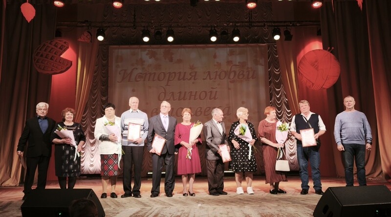 В субботу, 4 октября, в КСК «Невский» прошла церемония чествования золотых юбиляров. На сцену были приглашены пять супружеских пар шлиссельбуржцев, чей семейный стаж в этом году насчитал пять десятилетий. Это Спиридоновы Галина Львовна и Алексей Павлович, Булычевы Валентина Федоровна и Владимир Иванович, Негодяевы Валентина Викторовна и Алексей Иванович, Фаготовы Татьяна Николаевна и Виталий Сергеевич, Конфетовы Нина Павловна и Геннадий Александрович.