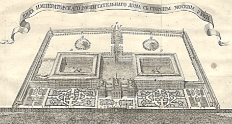 Вид Императорского Воспитательского дома со стороны Москвы реки (архитектор К.Бланк), проект и план которого был утвержден 1 сентября 1763 года Императрицей Екатериной II
