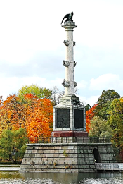Тогда же, совместно с архитектором Александром Виста, он участвовал в строительных работах по возведению в центре Большого пруда, пейзажной части Екатерининского парка, Чесменской ростральной колонны. Этот памятник, символизирующий победы русского флота над турецким в Чесменском, Хиосском сражениях и взятии Митилены, представляет собой установленную на гранитный пьедестал дорическую по форме мраморную колонну с рострами, барельефами и венчающим колонну бронзовым орлом. Общая высота этого памятника составляет более 25 метров.