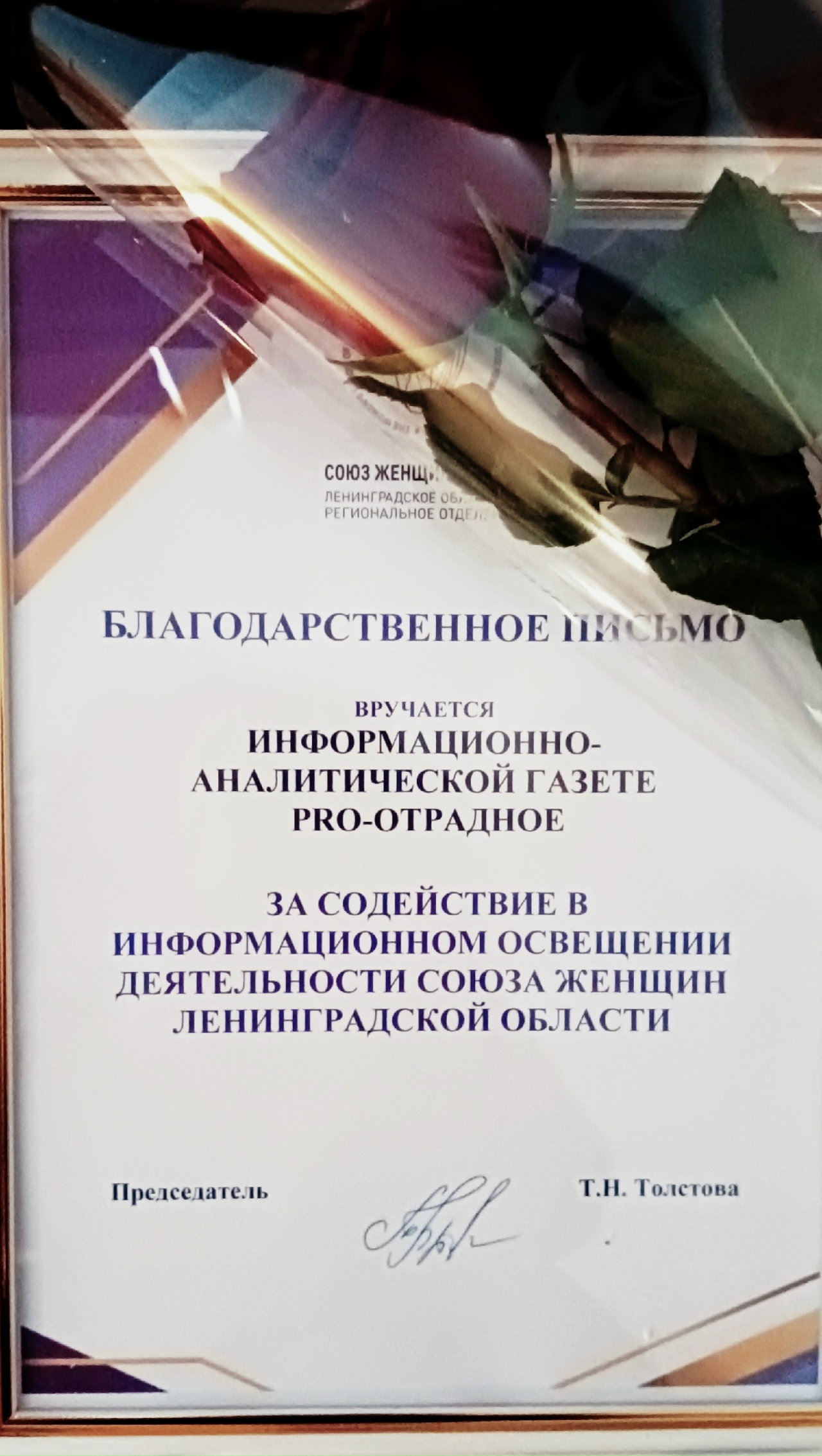 Годовое собрание Женсовета Кировского муниципального района прошло в День народного единства в КСК «Невский». Открыли мероприятие уполномоченный по правам ребенка в Ленинградской области, председатель Ленинградского областного регионального отделения общероссийской организации «Союз женщин России» Татьяна Толстова и председатель Женсовета Кировского района Мария Нилова. В рамках встречи были подведены итоги уходящего 2025 года и озвучены планы организации на 2026 год. С особой теплотой прошла церемония награждения, где дипломами поощрили самых деятельных представительниц отделения «Союза женщин России». Редакция нашей газеты также была отмечена благодарственным письмом за содействие в информационном освещении деятельности Ленинградского отделения «Союза женщин России».
