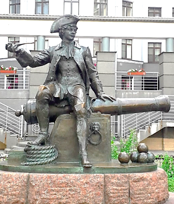 Памятник бомбардиру Василию Корчмину на Васильевском острове Петербурга, работа скульпторов Лукьянова Г. В., Сергеева С. В., 2003.