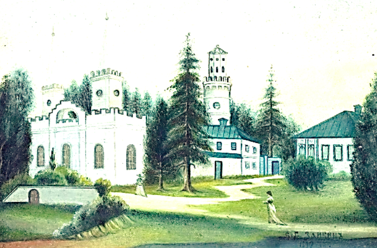 С. Г. Заикин. Остатки дворца князя Г. А. Потемкина-Таврического в Островках. 1897 г. - вольная копия масляными красками гравюры на стали У. Флойда 1848 года. В 1949 г. передана из Музея этнографии народов СССР в Государственный Эрмитаж.
