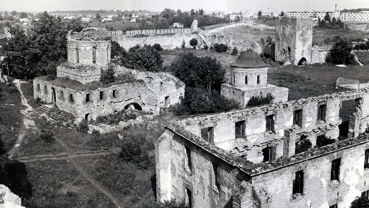 В годы Великой Отечественной войны памятнику был нанесен огромный урон: из 11 башен взорваны 6, разрушены участки стен, разрушены и сожжены почти все внутрикрепостные постройки /фото iren-haustova.ru/