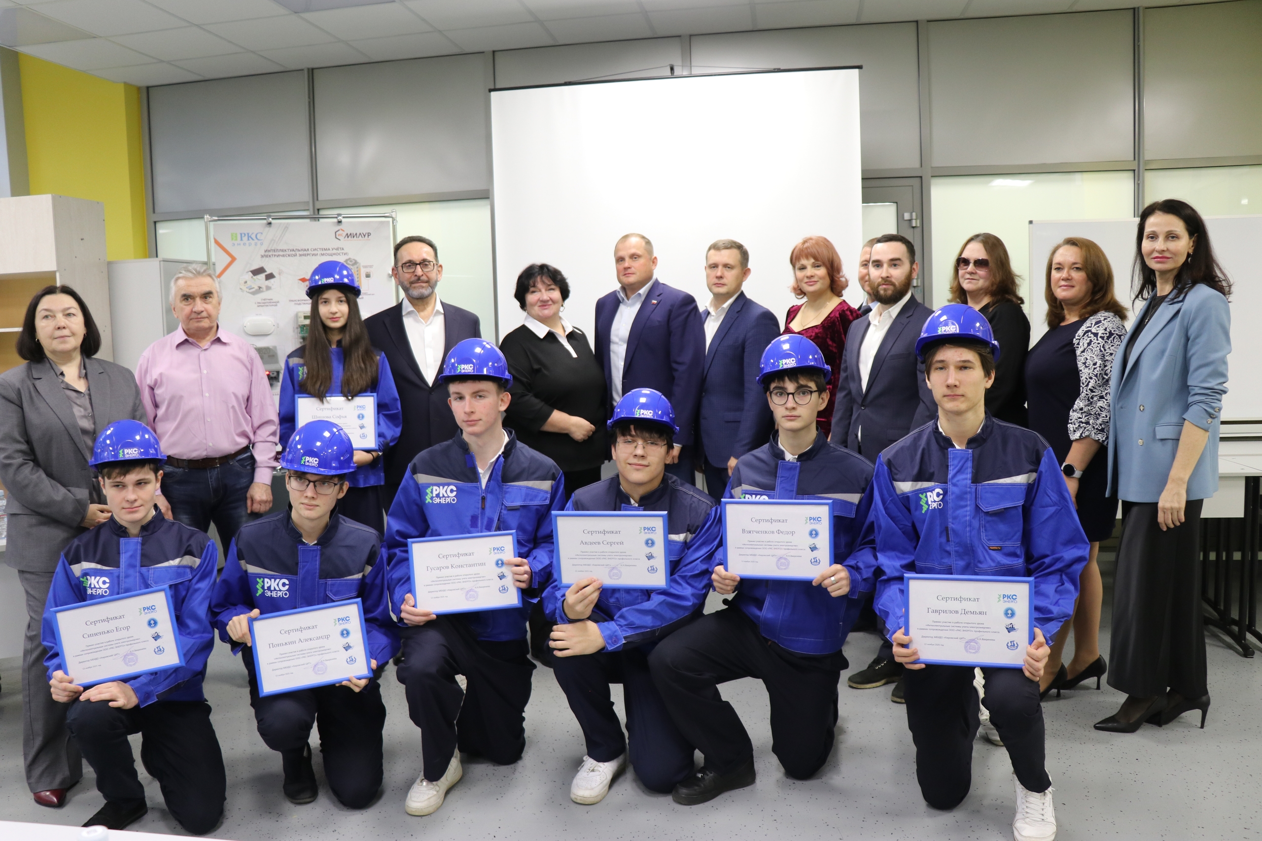 После экскурсии генеральный директор ООО «РКС-энерго» Бислан Гайрабеков и преподаватель Карим Еникеев вручили подарки первым учащимся «Энерго» класса: спецформу и обувь, подобранную индивидуально для каждого в соответствии с размером, каску и набор инструментов.