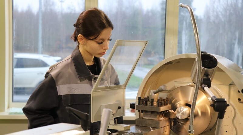 На базе техникума установлено такое же оборудование, как на заводах. Под запрос предприятий здесь изготавливают детали, а с работой с металлом и стружкой справится даже девочка.
