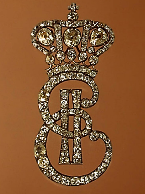 Фрейлинский шифр, известный также как фрейлинский вензель, представлял собой золотую усыпанную бриллиантами брошь в виде монограммы Императрицы Екатерины II.