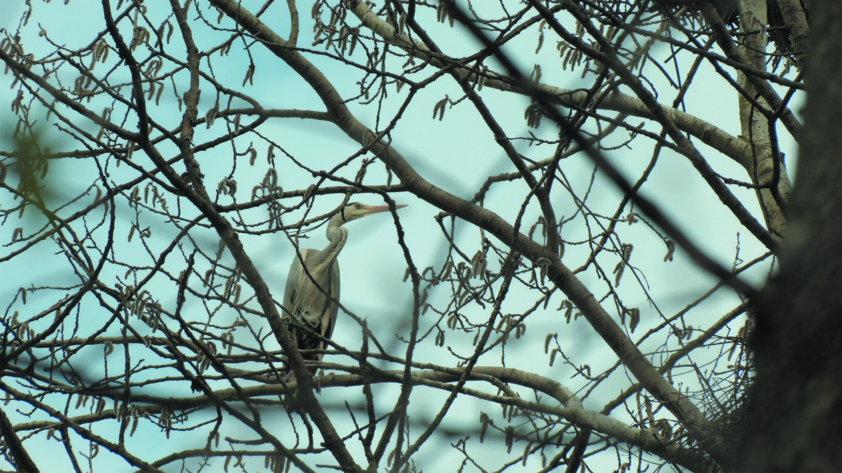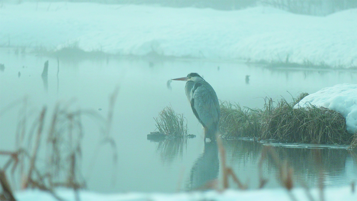 Серая цапля зимой в Гатчинском округе