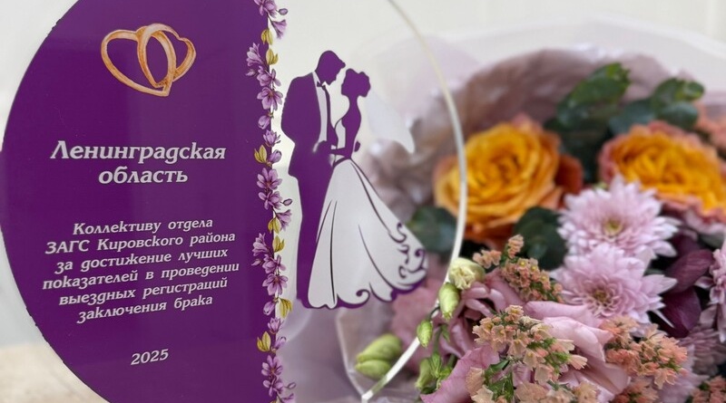 Коллектив отдела ЗАГС администрации Кировского муниципального района Ленинградской области отмечен специальной наградой за достижение лучших показателей в организации и проведении выездных регистраций заключения брака. Популярной площадкой среди молодоженов стал «Домик на пристани» в Шлиссельбурге.