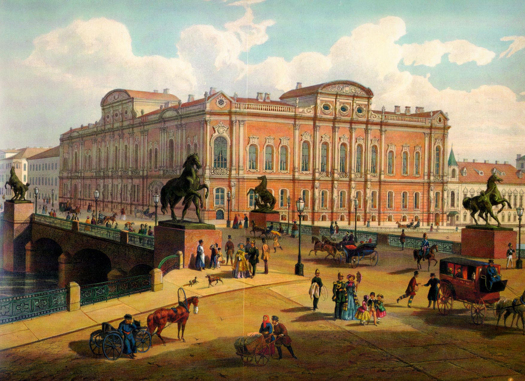 Аничков мост и дворец Белосельских-Белозерских. 1850-е. Художник И.Шарлемань