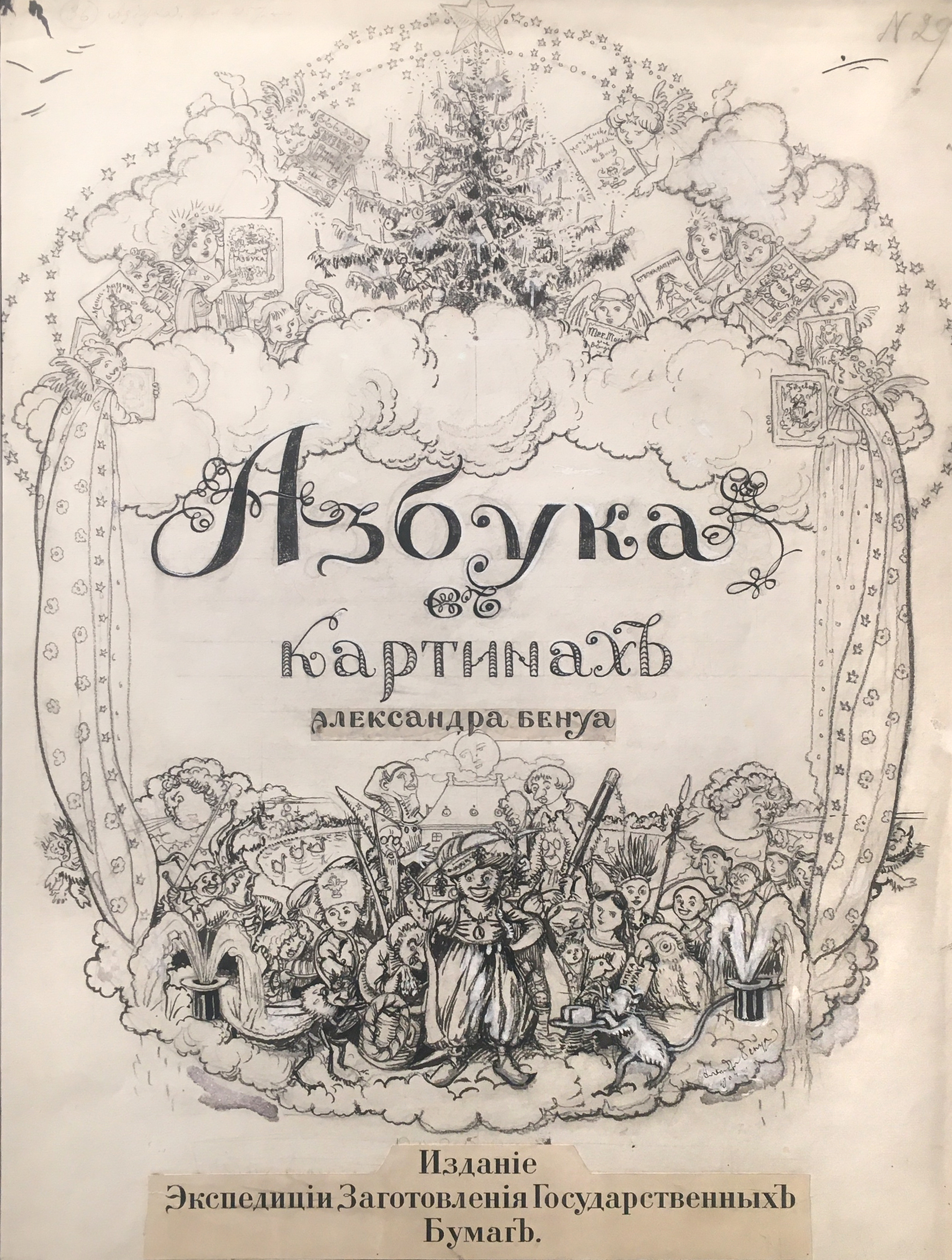 Листы из «Азбуки» художника А.Бенуа. Прообразом дачи для листа «Д» послужил петергофский дворец Марли. Сама же семейная дача, хоть и выглядела несколько иначе, находилась неподалеку — на берегу Финского залива. В Петергофе члены семьи Бенуа весело проводили время: на поляне в парке играли в жмурки и индейцев. Главой творческой династии, в роли Д — Деда, выступал архитектор Н.Бенуа.