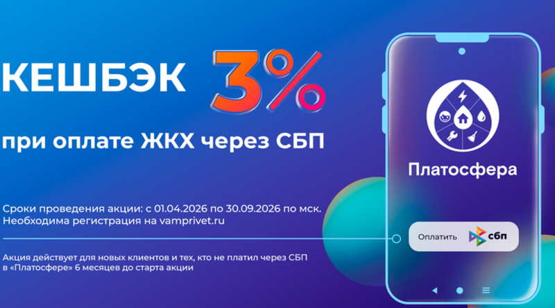 АО «НСПК» сообщает о возобновлении акции, популярной среди жителей Ленинградской области. Клиенты «РКС-энерго» могут получить кешбэк в размере 3% при оплате электроэнергии через Систему быстрых платежей (СБП) в мобильном приложении «Платосфера». Акция действует с 1 апреля по 30 сентября 2026 года.