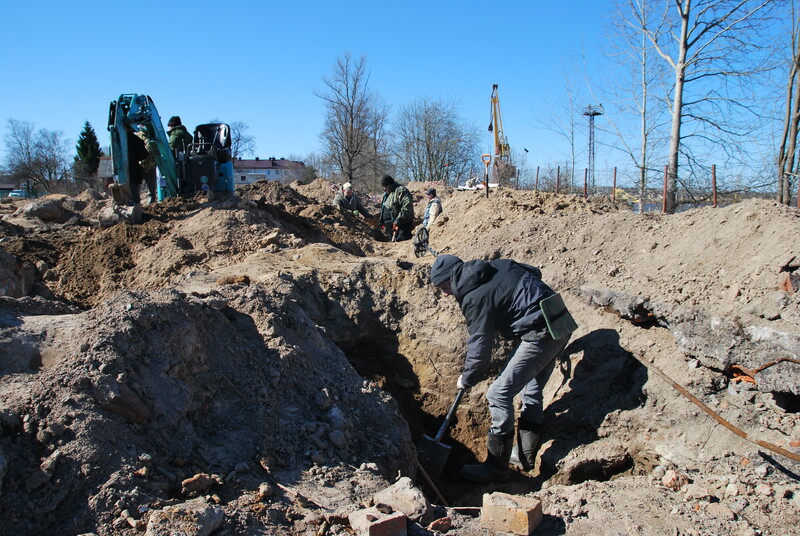 4 апреля к работе приступили поисковые отряды «Отчизна», «Родина», «Магура», «Тигода 47», а также специалисты центра патриотического воспитания Ленобласти. Опираясь на карты боевых действий и архивные данные, они обследуют участок и производят вскрытие грунта. «У нас есть немецкая аэрофотосъёмка сорок второго года, где видны траншеи, видны блиндажи непосредственно на этом участке. Территория сложная — много мусора, много кирпича. Привлекли к работе спецтехнику, потому что лопатами копать верхний слой практически невозможно», — рассказал командир отряда «Отчизна» Даниил Смолин.