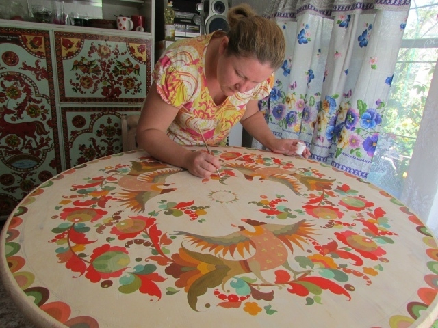 — На сегодняшний день многие знают меня как мастера росписи по дереву. С детства мы занимались во Дворце творчества юных, где моя тётя — Галина Петровна — преподавала. Ребят она знакомила с традиционными русскими промыслами и росписью: хохломской, городецкой, северодвинской, мезенской. Отрадно вспомнить, что на занятия ходили не только девочки, но и парни. Тогда все, что можно было расписывать, мы расписывали — от ложки до мебели. Сейчас я остановилась на детской традиционной игрушке. Это очень нравится и детям, и взрослым. Как говорится, наверное, сама не наигралась. Опять же, по стопам тети я пошла и в том, что вышиваю.