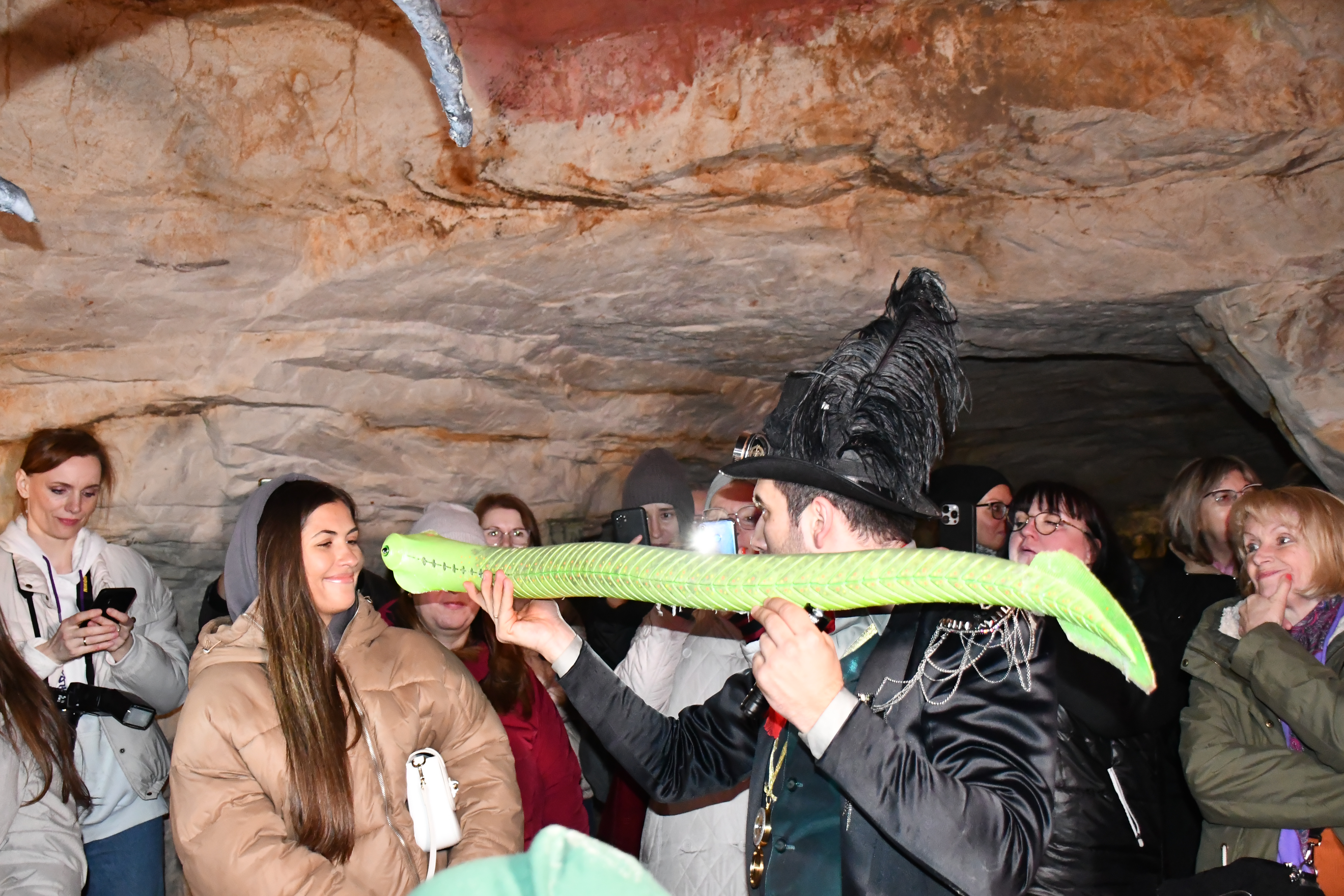 С первых шагов юные исследователи становятся полноправными участниками научного квеста. Роль портала между двумя мирами выполняет обустроенное пространство Левобережной пещеры, которая в 2024 году была включена во Всероссийский реестр объектов научно-популярного туризма. Ее лабиринты — настоящая кладовая подземного мира, где почти все геологические свиты области представлены вживую (свита — это группа горных пород, объединенных общими признаками — прим. автора).